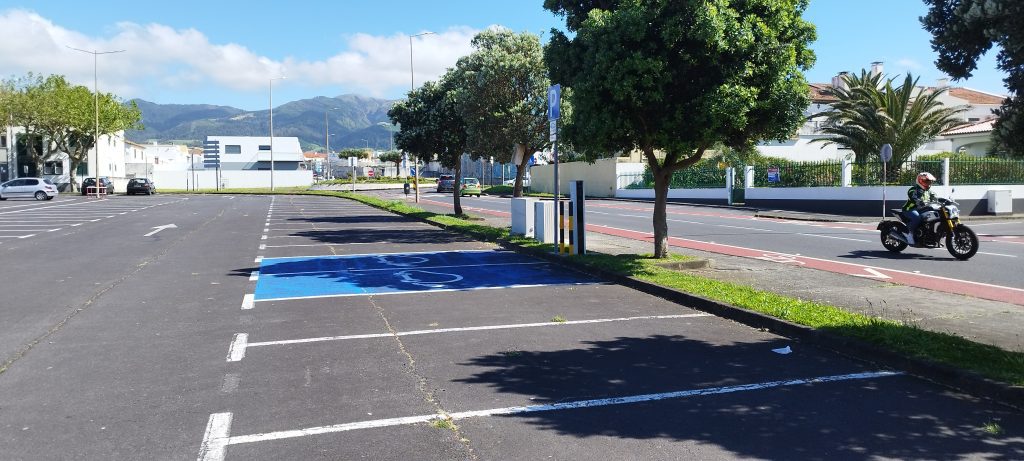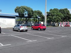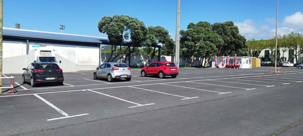 Un parking sin servicios. Hay un lanchonete abierto hasta tarde. Para mayor tranquilidad quédese en el lado opuesto del parque. Gratis y muy conveniente para visitar el pueblo de Ribeira Grande o la playa de Santa Bárbara, donde el estacionamiento suele estar ocupado en verano.
