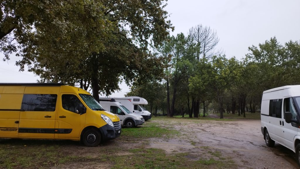 Um local agradável para uma paragem.e pernoita. Serviços básicos. Piso em terra batida não nivelada. Seguro. A 200 metros da estação de comboios.