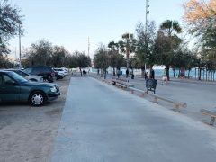 Bom lugar para estacionar e passar a noite. É um parque em frente à praia, pago das 8h às 20h, gratuito durante a noite. Localização tranquila e ideal para ir à praia. Preço 0,90€ hora durante o dia. Gratuito à noite. Pode ser movimentado nos fins de semana e na alta temporada.