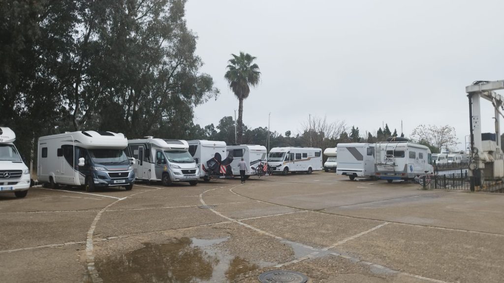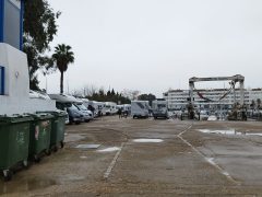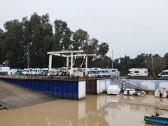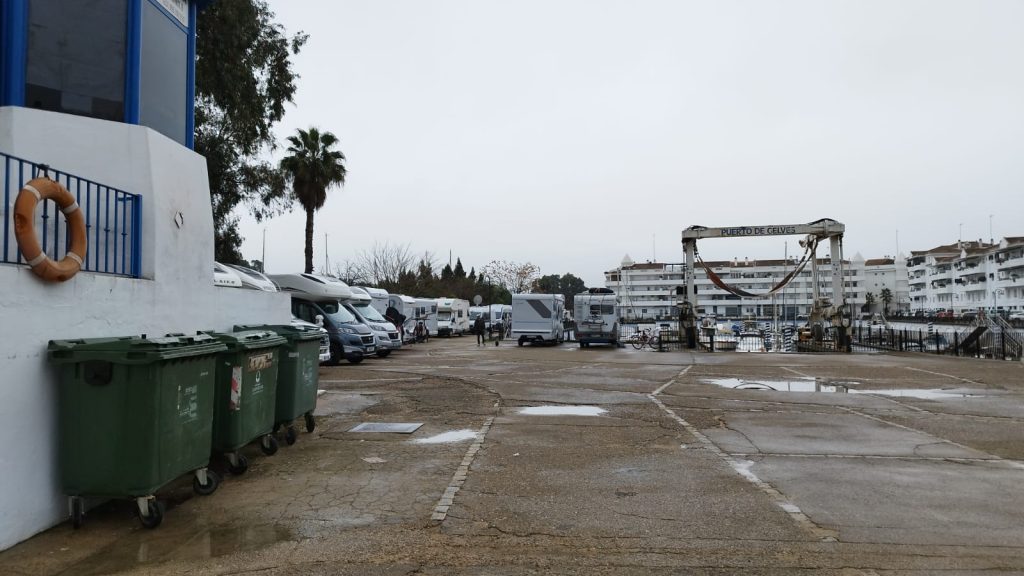 O estacionamento para autocaravanas no porto de Gelves oferece um encantador cenário ribeirinho ao longo do Guadalquivir. A equipe é acolhedora e as comodidades incluem um chuveiro compacto e uma máquina de lavar. Convenientemente localizado perto da cidade, possui entrada 24 horas por dia, 7 dias por semana, com campainha no portão de acesso. Na chegada, o guarda orienta os visitantes até o escritório no final da plataforma, onde serão orientados a estacionar no lado oposto.